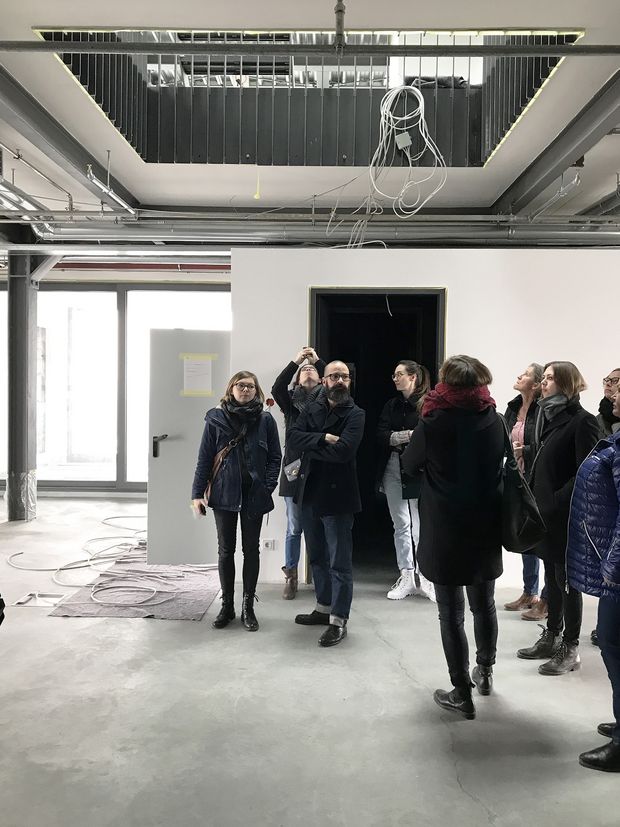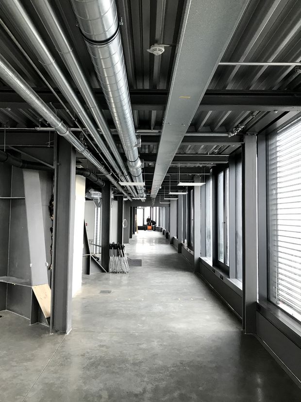 Das 11. Obergeschosses, die krönende Aufstockung auf dem Kraftwerk in luftigen 50 Metern Höhe, ist so gut wie fertig. Bei einer Mitarbeiterführung zeigt Jörg Siegert die künftigen Loftbüros.
