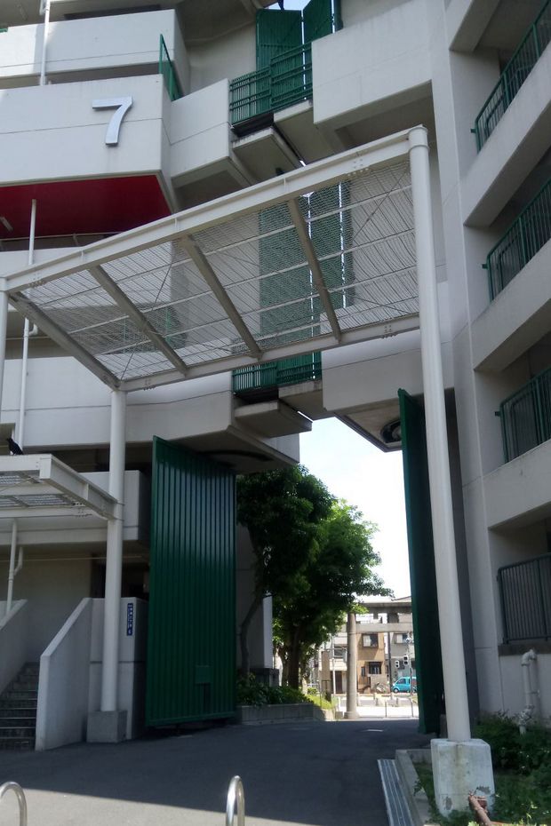 Ein weiteres Beispiel sind Gebäudezeilen, die eine Brandwandfunktion haben. Eine solche Siedlung wurde zwischen 1975-1979 am Ufer des Sumida Flußes gegenüber Mukojima erbaut, zusammen mit einem großflächigen Evakuierungsplatz, dem Higashi-Shirahige Park.