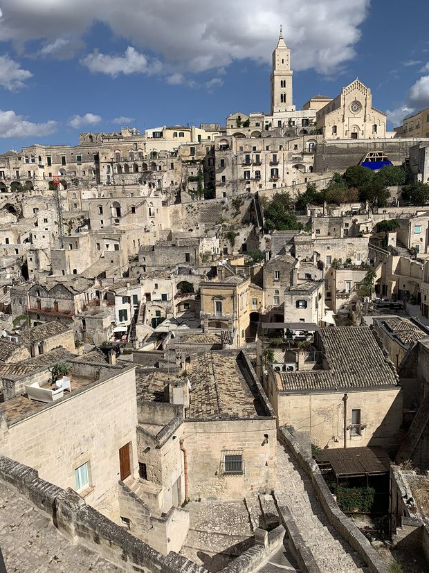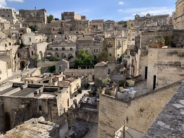 Unsere Mitarbeiterin am Puls der Zeit: Besuch der süditalienischen Höhlenstadt Matera mit den Sassi, den Höhlensiedlungen und Felsenkirchen, UNESCO Weltkulturerbestadt, Kulturhauptstadt Europas 2019, perfekt angepasst an die geografischen Bedingungen, beeindruckend.