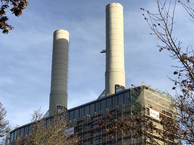 Wer die Umbaugeschichte des Kraftwerks verfolgt hat, dem ist das Wanderfalkenpaar mitsamt Nachwuchs wohl bekannt, das schon seit Jahren an einem der Schornsteine nistet.